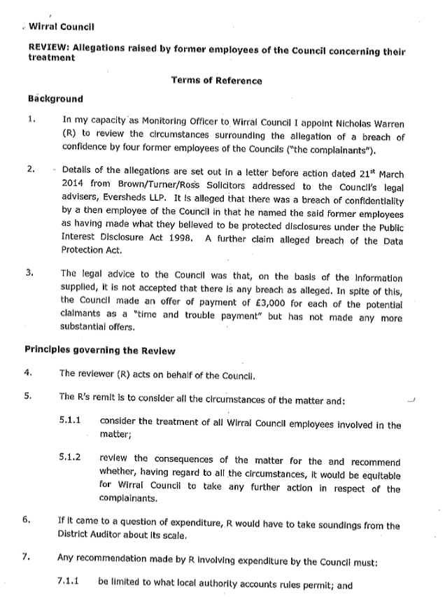 The Thynne Report relating to #Wirralgate (which will curiously disappear from the Wirral.gov.uk website one day, so I’m reproducing it here before that happens) …