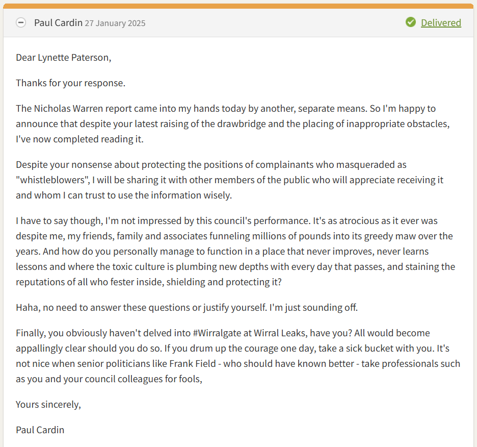 The information professionals at toxic Wirral Council tried, but failed to stop me getting my hands on the information below after 13 years.