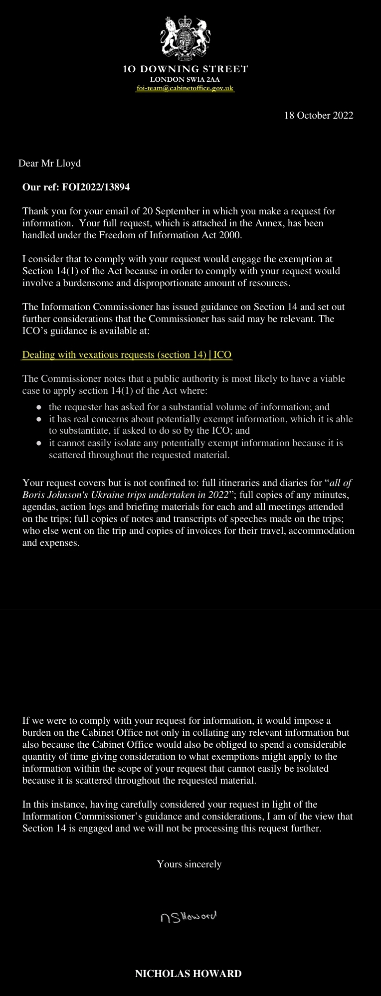 Yes, thousands of innocent people are dying, and yes, Boris Johnson is a proven liar, but … go away. Signed, the Cabinet Office