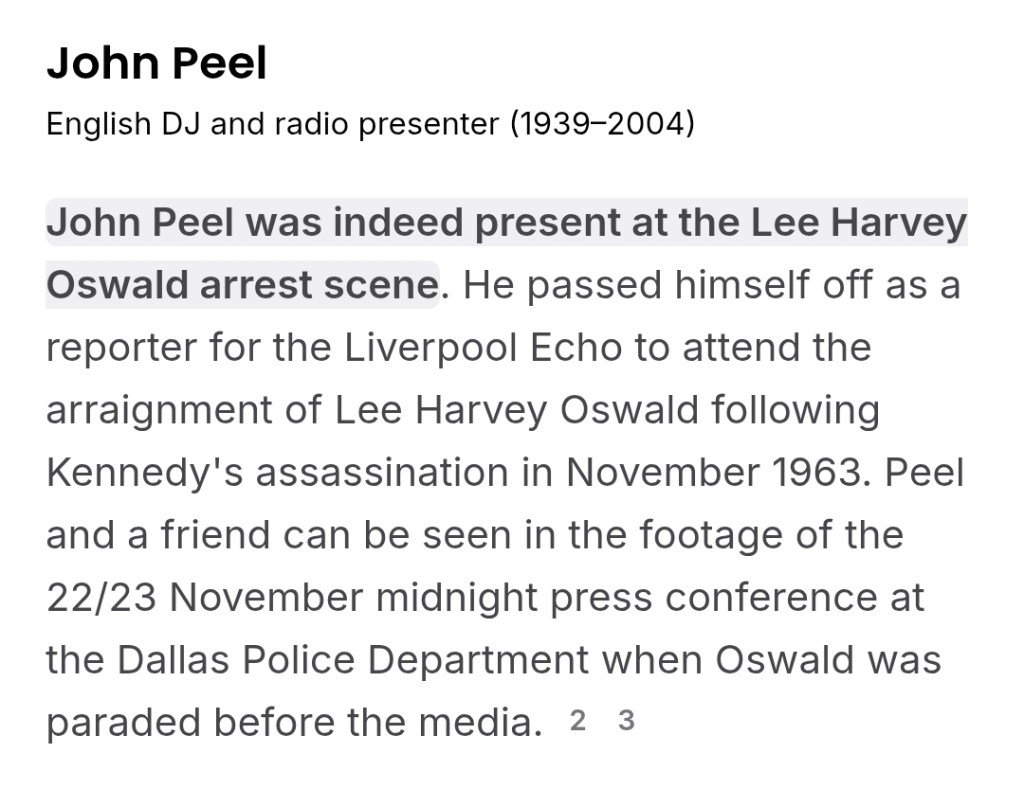 Was UK DJ John Peel at the Lee Harvey Oswald arrest scene?