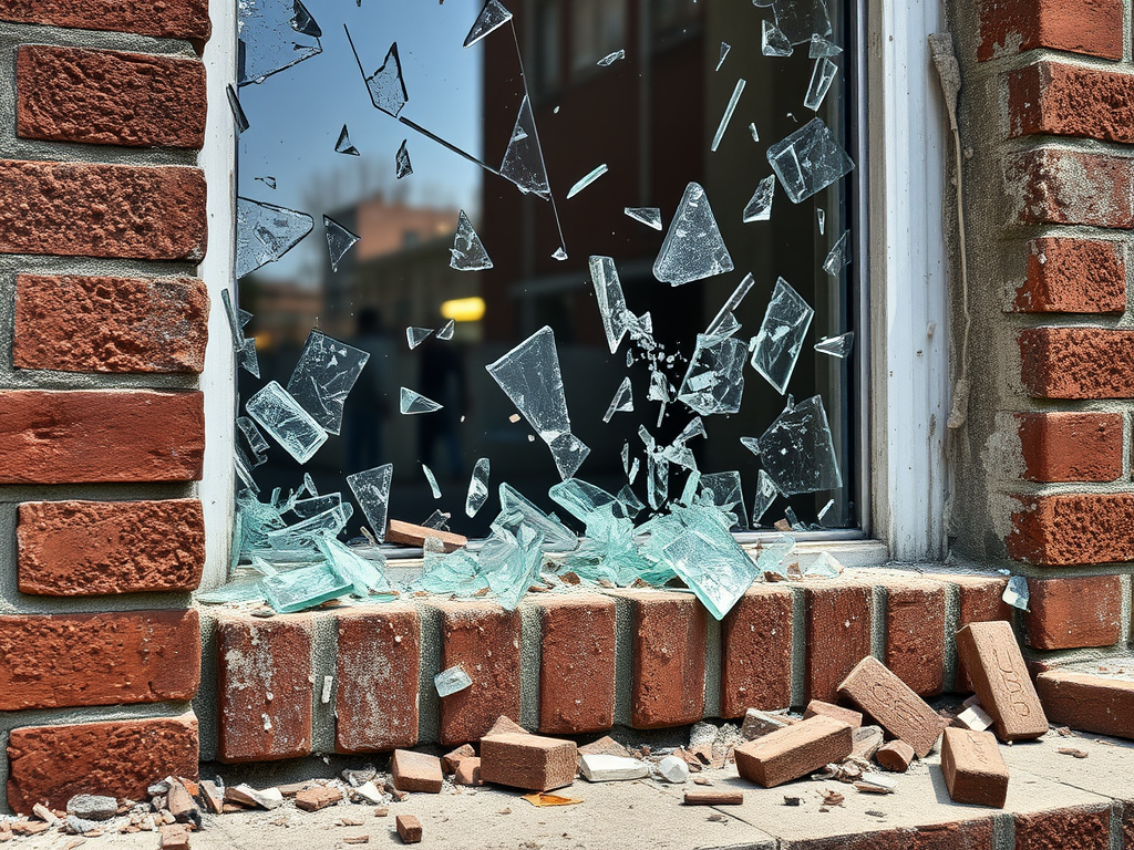 Merseyside Police’s investigation found that the window was broken by a “bit of masonry” or debris, not necessarily a brick, contradicting the media’s use of “brick” (Vox Political, September 26, 2016). A post on X by @0Calamity (September 19, 2021) notes, “it wasn’t a brick.”
