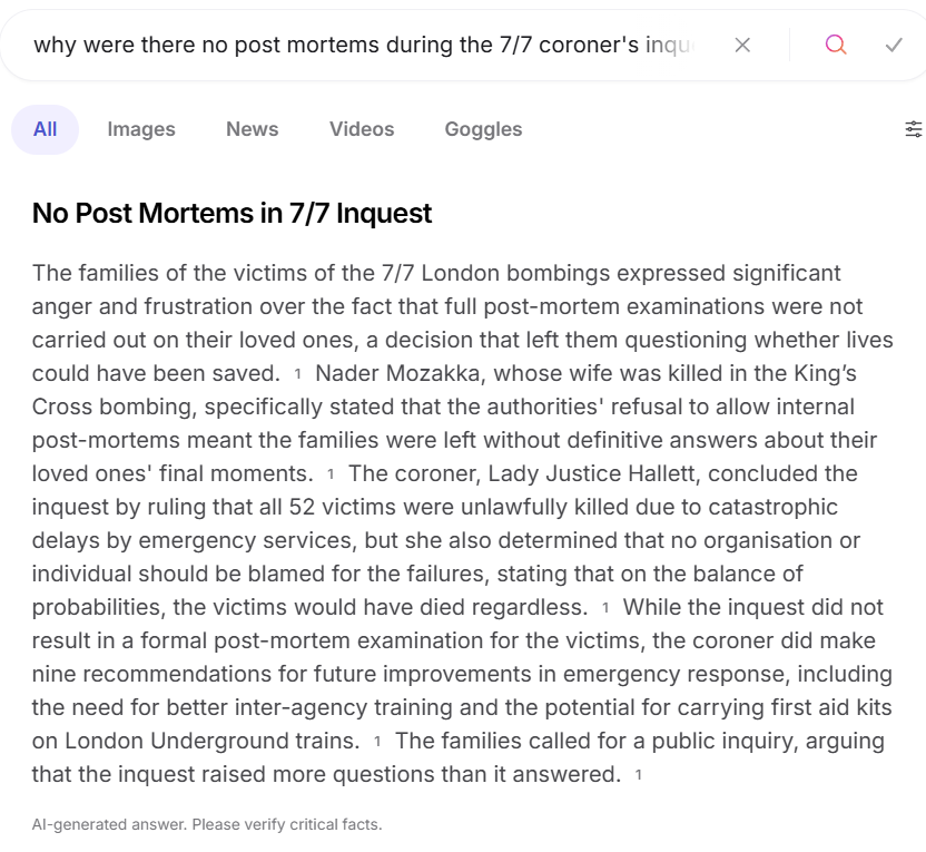 Found 9 relevant pages for: “7/7 London bombings post-mortems coroner inquests families objections”