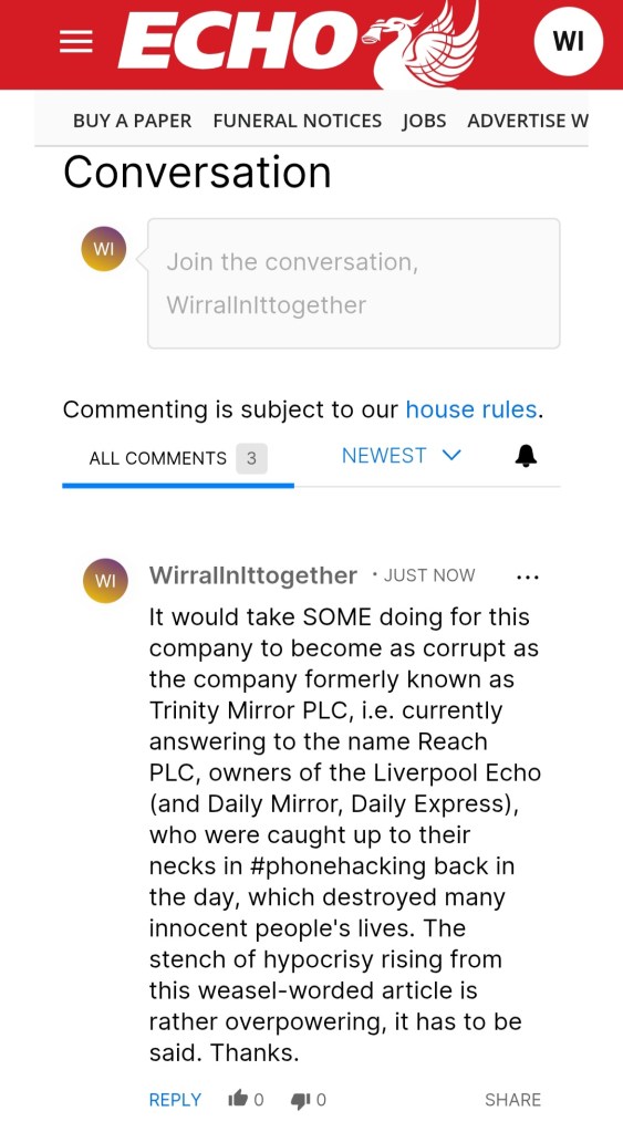 And look what the obedient fools at Reach PLC did to my factual comment … cancelled it, deleted it, obliterated it…! 😁
