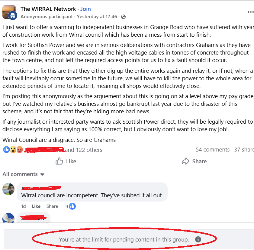 “This hasn’t gone unreported. A whistleblower who says he works for Scottish Power has gone public on Facebook to make this situation known. His contribution can be viewed here: https://www.facebook.com/groups/wirral/permalink/10163102362827012/?mibextid=wwXIfr&rdid=KVetkx8Y4ZVUo8l3#…”