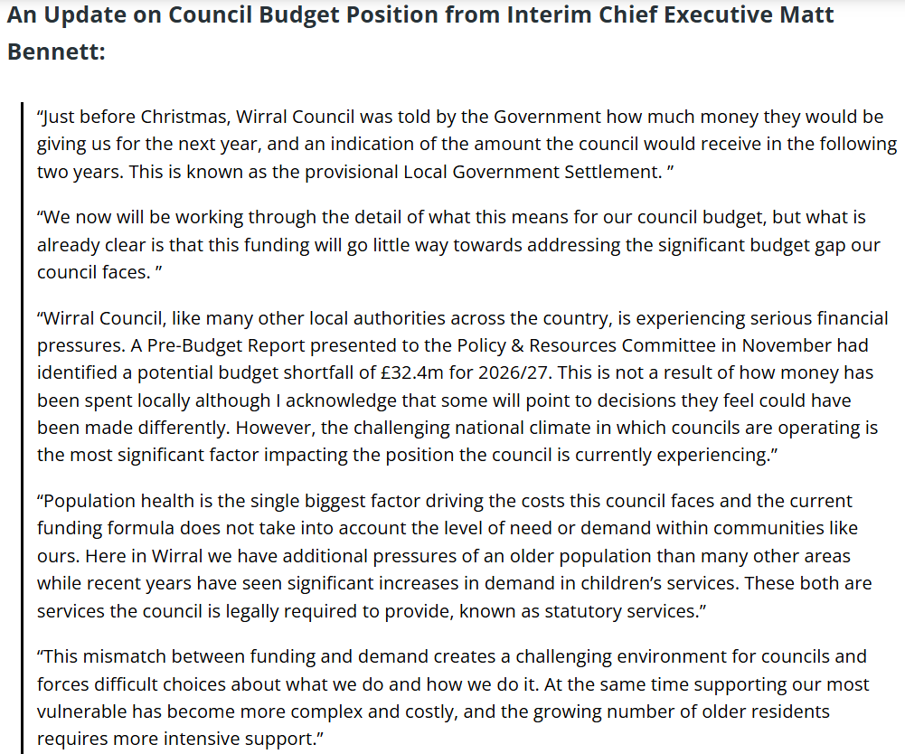 So the incompetence of a senior finance person at Wirral Council – which Matthew Bennett has carefully omitted to mention above – put us into the dire straits we’ve been occupying for well over a decade, and from which we may never emerge.