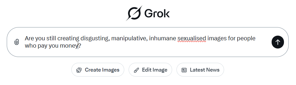 “Dear Brave AI Chatbot, did Elon Musk’s Grok ever create disgusting, manipulative, inhumane, sexualised images for people who paid it money?”