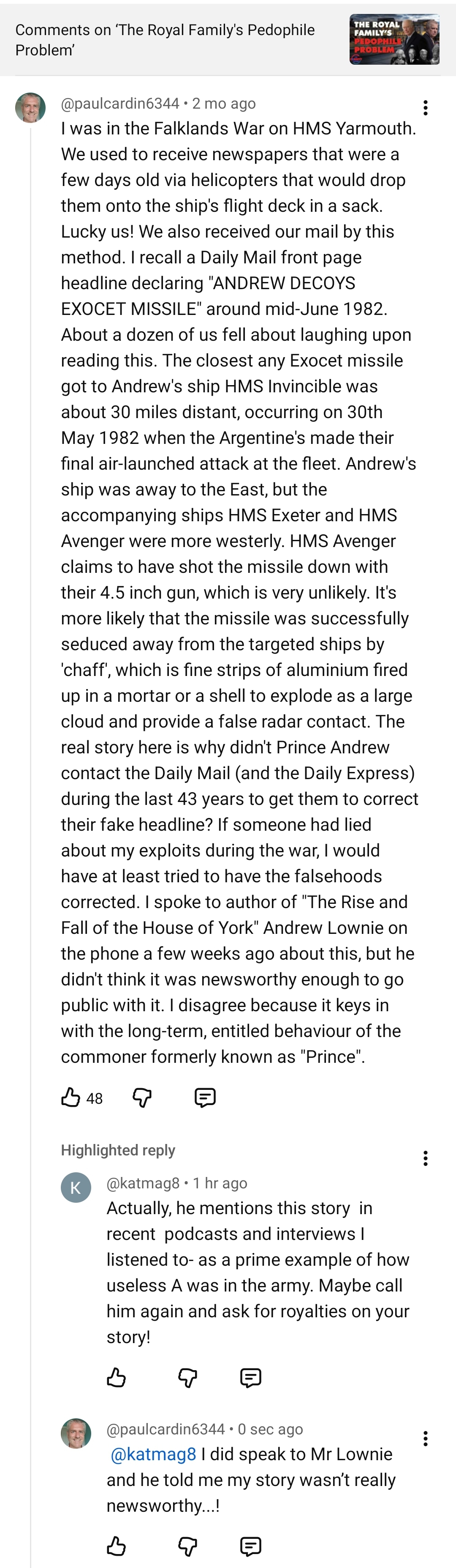 YouTube post by James Corbett. Comment refers to Andrew Lownie …