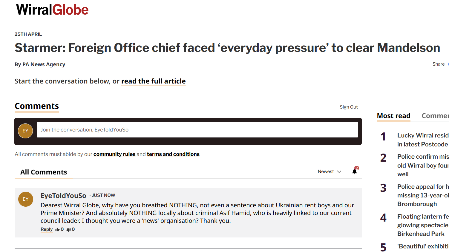 Dearest Wirral Globe …